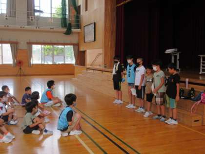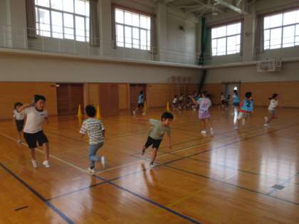 大休憩中、運動委員会が主催した「けいどろ遊び」になかよし班ごとに集まり楽しみました。6年生が「けいさつ」になって追いかけます。上手く捕まらずにすり抜けて走る低学年もいました。みんなで仲よく楽しそうに遊んでいます。明日は違う班で行われます。