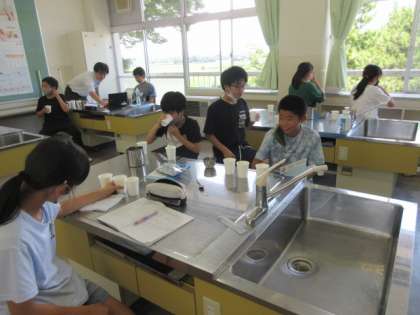 カルピス原液と水の量が違うカルピス水を飲み比べしながら、濃さの違いと割合について考えています。