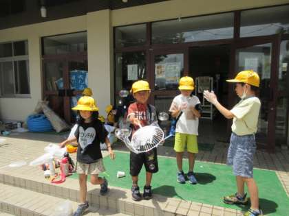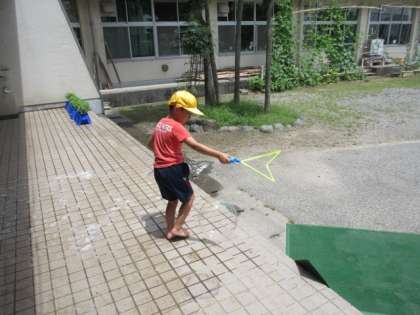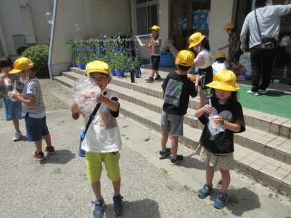 シャボン玉を作って遊びました。いろいろな形や大きさのシャボン玉が出来上がりました。