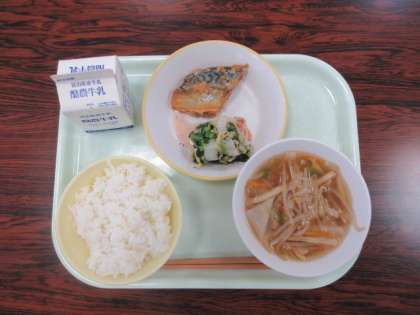 今日の献立は、ご飯 ワンタンスープ 鯖の竜田揚げ 梅肉和え 牛乳 でした。