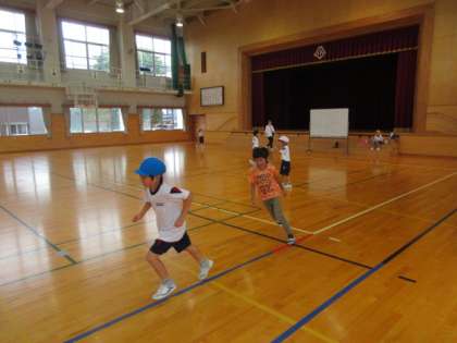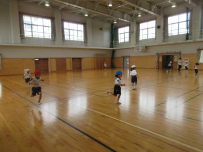お楽しみ会として、体育館でライン鬼ごっこやこおり鬼ごっこで楽しく活動しています。