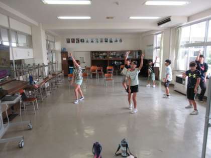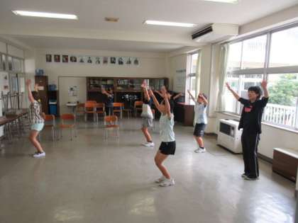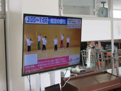 全校リズムダンスコンクール大会出場に向けて、規定となるダンスをビデオを見ながら踊ってみました。さすが、飲み込みがはやく、踊りこなしていました。