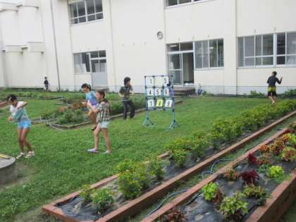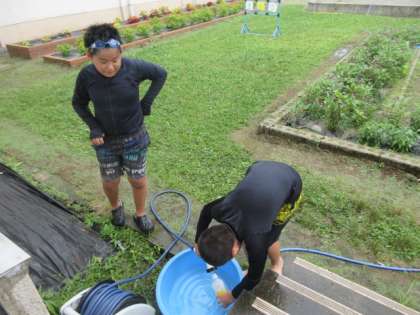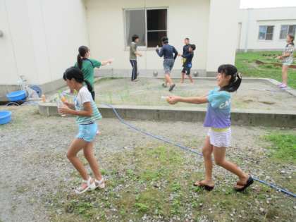 自作の水鉄砲で、思いっきり遊びました。