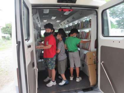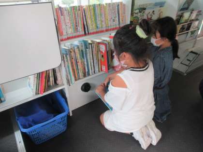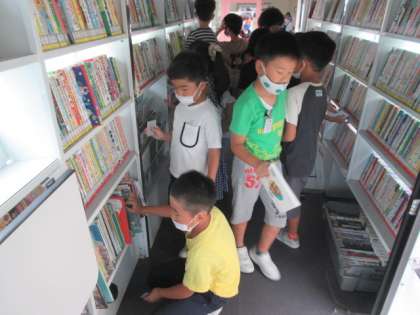 1学期最後の巡回図書でした。思い思いに好きな本を選んでいます。