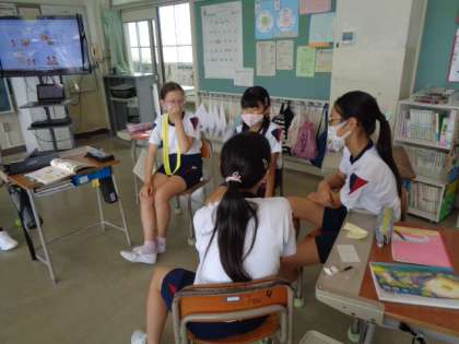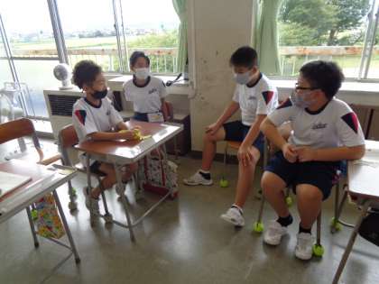 2つの違う立場に分かれ、どちらがふさわしいか、納得がいくかを議論で競い合います。自分が賛成する立場のよい面や選んだ理由などを話し合って考えながら、議論に備えています。テーマは飼うのなら「犬」か、それとも{猫}か