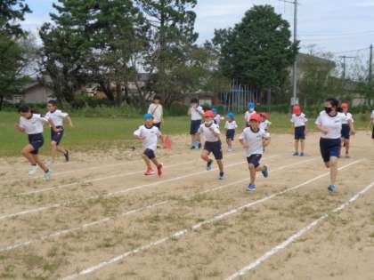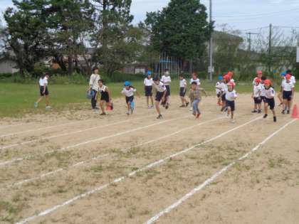 全校で、短距離走のダッシュ運動に取り組みました。腕を素速くしっかり振り、力蹴ることを蹴ることを意識して取り組んでいます。
