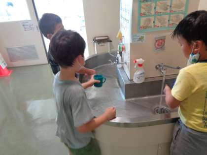 2学期から、週1回のフッ素洗口の実施日を金曜日から水曜日に変更しました。2学期、初めての実施日です。苦みを感じながら、健康な「歯」の維持に心がけています。