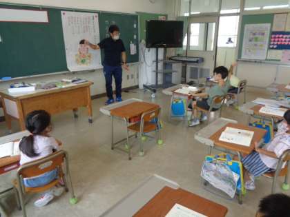 2学期から「カタカナ」の学習が始まりました。読み方や書き方について知っていることや見付けたことなど話し合っています。次の時間には、丁寧に書く練習をしました。