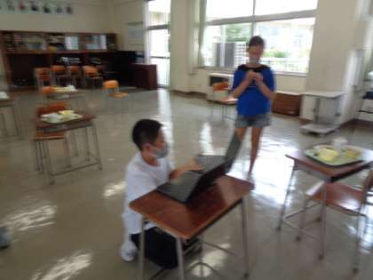 お昼の校内放送で、情報委員会からミートで参加する「情報モラル」についてのクイズがありました。自分でクロムブックを使う際に改めて確認すべきことばかりで、とても勉強になりました。
