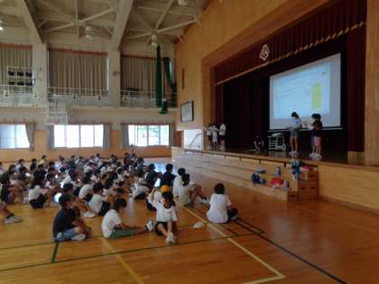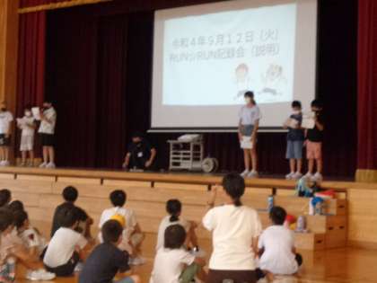 今年度行う「RunRun記録会」について運動委員会から説明がありました。自分の走りの「伸び」確認し合う記録会です。来週は始めの記録を測る予定です。。