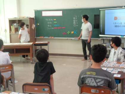 外部講師の方をお招きし、カードゲームを通して「海洋ゴミ」問題について考えました。それぞれ違う立場から「海洋ゴミ」問題に携わることで、「市民意識」「便利さ」「技術」「ごみの量」に深く影響を与えることを知り、多様化な見方・考え方の必要性を考えることができました。