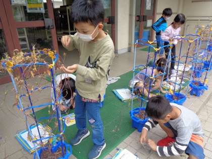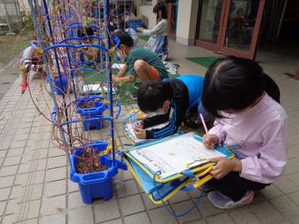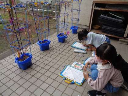 大切に育てたアサガオの種を採り、観察をしました。黒々とした立派な種がたくさん採れました。種は来年度の1年生へもプレゼントします。