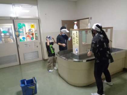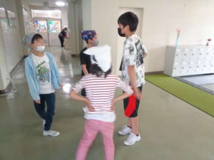 なかよし班掃除の担当場所が新しくなりました。掃除の役割分担を確認後、黙々と掃除に取り組んでいます。