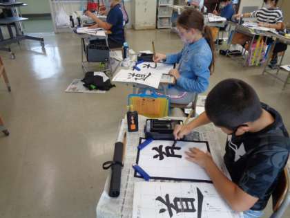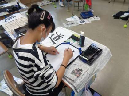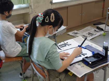 「しんにょう」の形や位置に気を付けながら、丁寧に書いています。