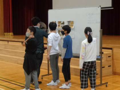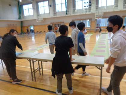 5・6年生が、学習発表会に向けての体育館設営を行いました。仕事を見付けながら進んで働く姿は、さすが5・6年生です。