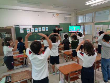 ALTの先生と英語を使ったジェスチャーゲームなどをしながら英語に親しみました。