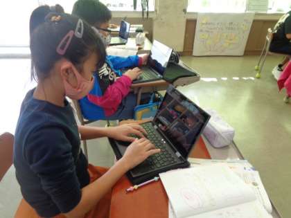 学校内の汚れている場所を探し、きれいに掃除する方法について考えたり調べたりしています。