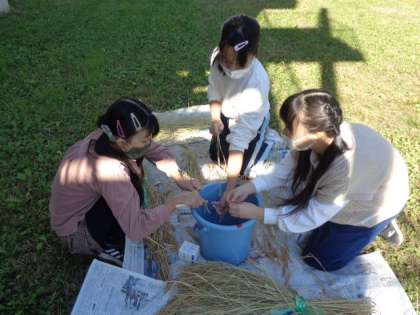 先週から乾かしていた稲の脱穀をしました。大変さ作業でしたが、米一粒一粒の重みを感じました。
