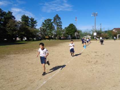今おど日は、全員がトラックコースに挑戦。自分の力をチェックしました。時間ぎりぎりまで頑張って走る子どもたちの姿もたくさん見られました。