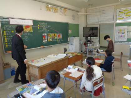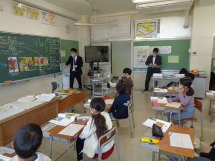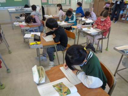 登場人物の気持ちの変化を考えながら、「だれにでも仲よくなれる人はどんな人か」について話し合っています。友達の意見を聞き、じっくりと自分の考えをまとめながら話し合っています。