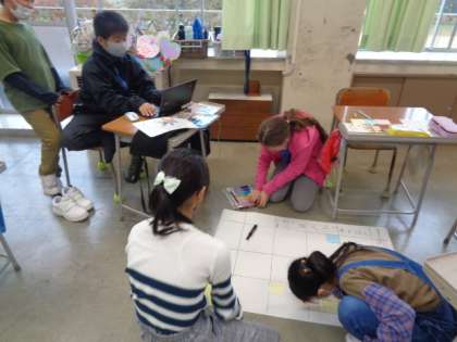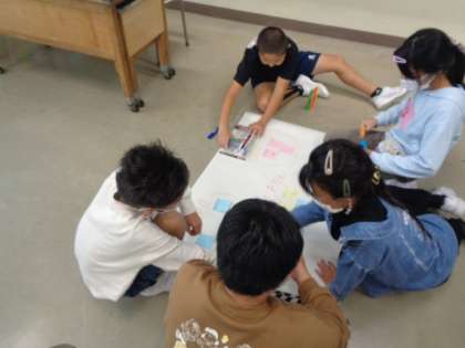 「給食時間に静かに過ごすための方法」について意見を出しあい、よい点や問題点について話し合いまとめています。