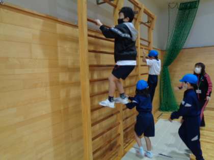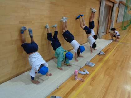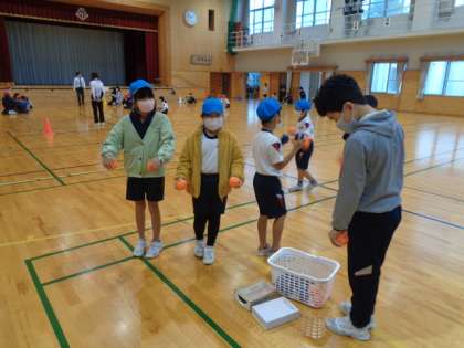 新しい運動を取り入れた体力つくりタイムの2回目です。前回の種目を赤青黄団でローテーションして替え、違う運動に挑戦しました。