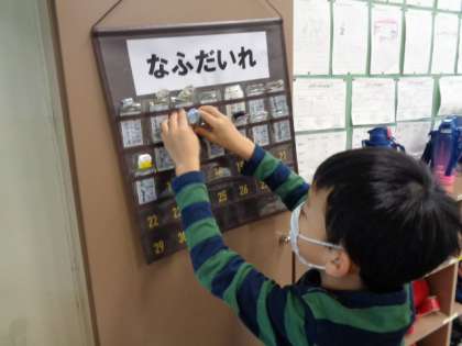 下校時に名札をはずし、学校に置いていくこととしました。その1日目です。名札は担任が各教室で一括して管理しています。