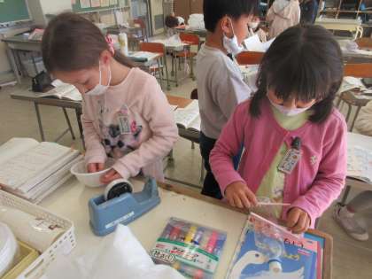 生活科では、おもちゃ作りを始めました。自分が作りたいおもちゃを作って遊んだり、よりよいおもちゃにしていこうとしたりしていきます。
