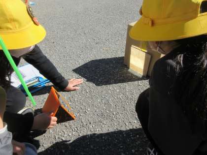 鏡ではね返した日光が当たった部分の温度を調べました。