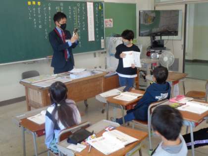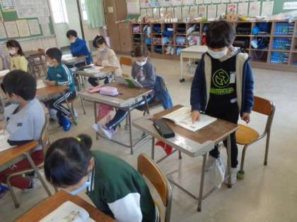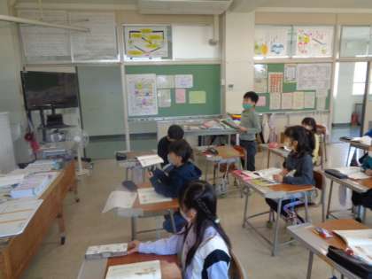 おもちゃの馬の作り方について、教科書の説明文を正しく読み取りながら、確かめています。友達の話も集中して聞いています。