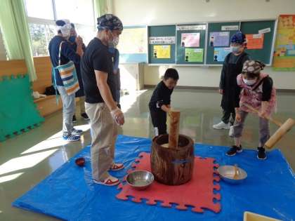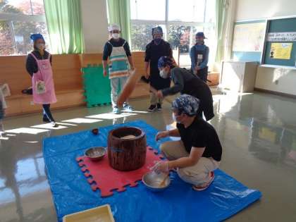 PTA執行部とおやじの会の方々を中心とした保護者の皆様が、19日に行う餅つき大会の事前準備をしてくださいました。何人かの子供たちの応援も。本当にありがとうございました。