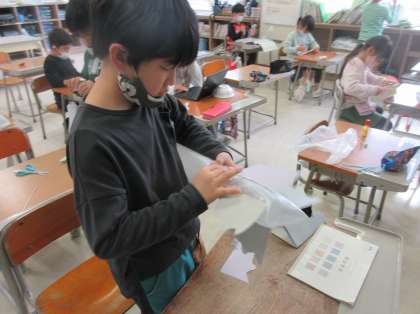 生活科では、おもちゃづくりをしています。今回は、1年生に楽しんでもらうという目的をもっておもちゃづくりに取り組んでいます。