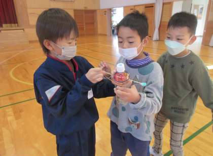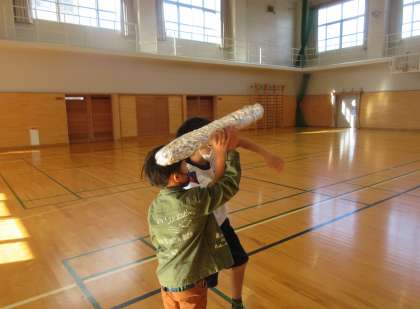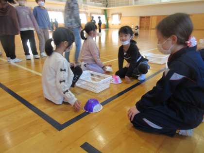 今日の生活科では、1年生を招待して「1年生とおもちゃで楽しく遊ぼうね集会」を開きました。2年生が作ったおもちゃで、1年生にたくさん遊んでもらいました。