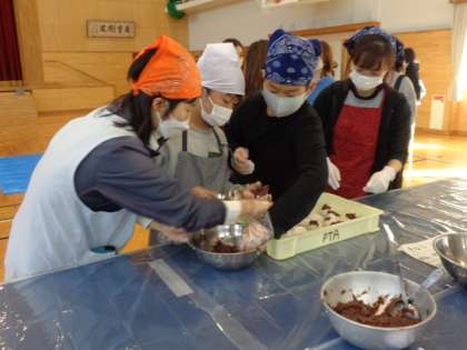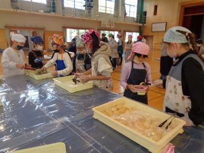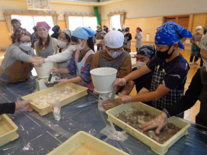 もち作りの中心になって仕事をした5年生。手際よく協力し合いながら、たくさんの美味しい餅を完成させました。