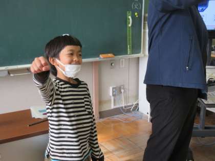 外国語活動では、教室にある様々な形を探しながら、英語ではどう伝えたらよいのかを考えました。国語科では、大豆のほかにもすがたを変えるものがあるのかを調べました。