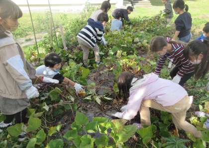 5月に植えたさつまいもの収穫の時期になったので、今日は芋掘りをしました。
