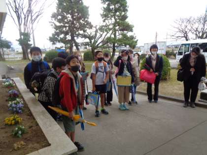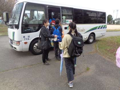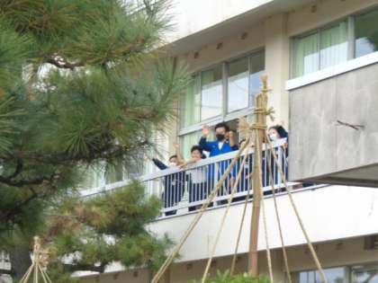 イタイイタイ病資料館と四季防災館での社会見学に向けて出発しました。2年生もベランダから見送りです。
