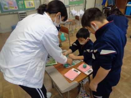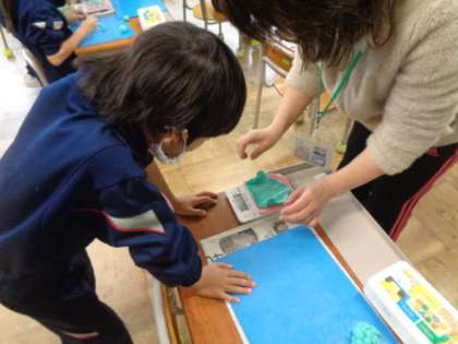 物の重さは、形を変えるとどうなるのだろう。実際に重さを量りながら確かめています。