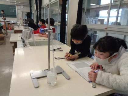 水を冷やすとどのような変化を起こすのか、時間ごとの水温や水の様子を調べました。