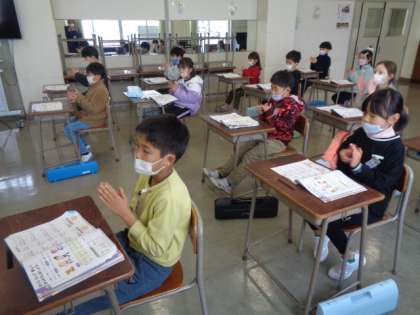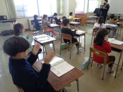 拍に合わせてリズム打ち。みんなの気持ちも一つになり、リズムよい音を響かせていました。