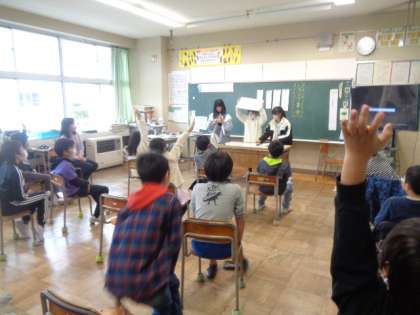 お楽しみ会の一場面です。絵による言葉当てゲームをしています。