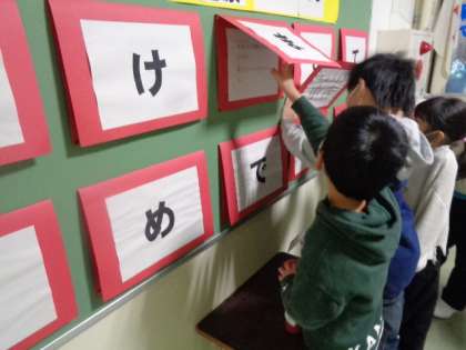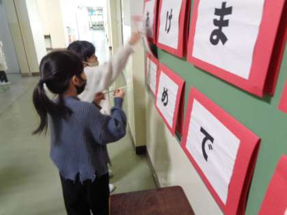 保健室前に、人気スポットが登場。健康おみくじを引いて、心や体の健康を占っています。「