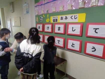 保健室前に、人気スポットが登場。健康おみくじを引いて、心や体の健康を占っています。「