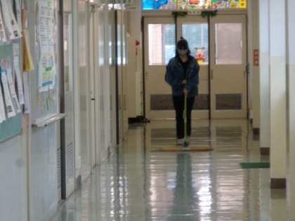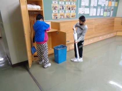 登校後、校舎内で汚れているところを見付け、きれいにしている5・6年生の姿がありました。素敵な1日のスタートが切れそうです。
