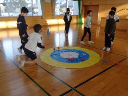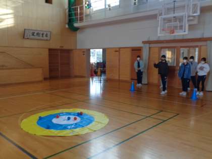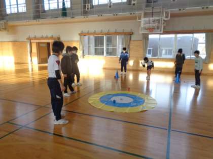 学校に巡回してきたボッチャの道具を使って、さっそく試しに体験しました。始めは普段あまり使用しないボールに戸惑いながら、すぐに慣れ、上手にボールを扱っていました。