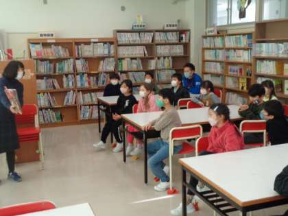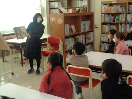 図書館司書の先生に十二支にまつわる本を読んでいただき、真剣に聞き入っています。