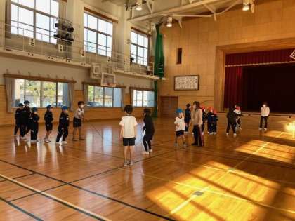 今日は、6年生と5年生が宿泊学習に行っているので、4年生が中心となって、低学年に教えたり、みんなで声を掛け合ったりしながら楽しく練習に取り組みました。