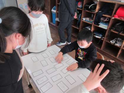 前の時間に作ったかるたで遊びました。友達の作ったかるたを読み、楽しく漢字の勉強をしました。