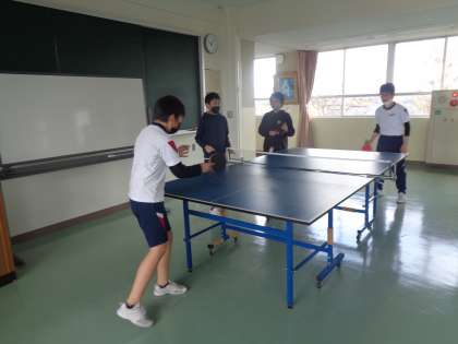 冬場の隊力作りの一つとして、視聴覚室に卓球台が設置され、早速子供たちは卓球を楽しんでいました。時間や遊び方、用具の片付けなど、ルールーをしっかり守り、楽しんでほしいと思います。