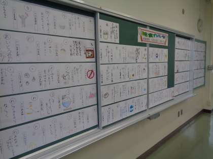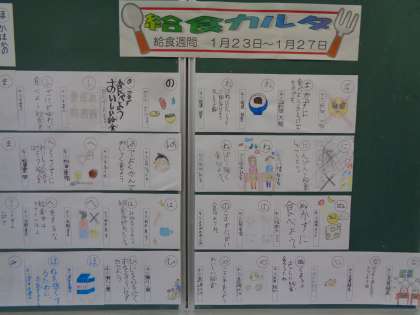 また、給食にちなんだ給食カルタも飾られ、週間を盛り上げています・